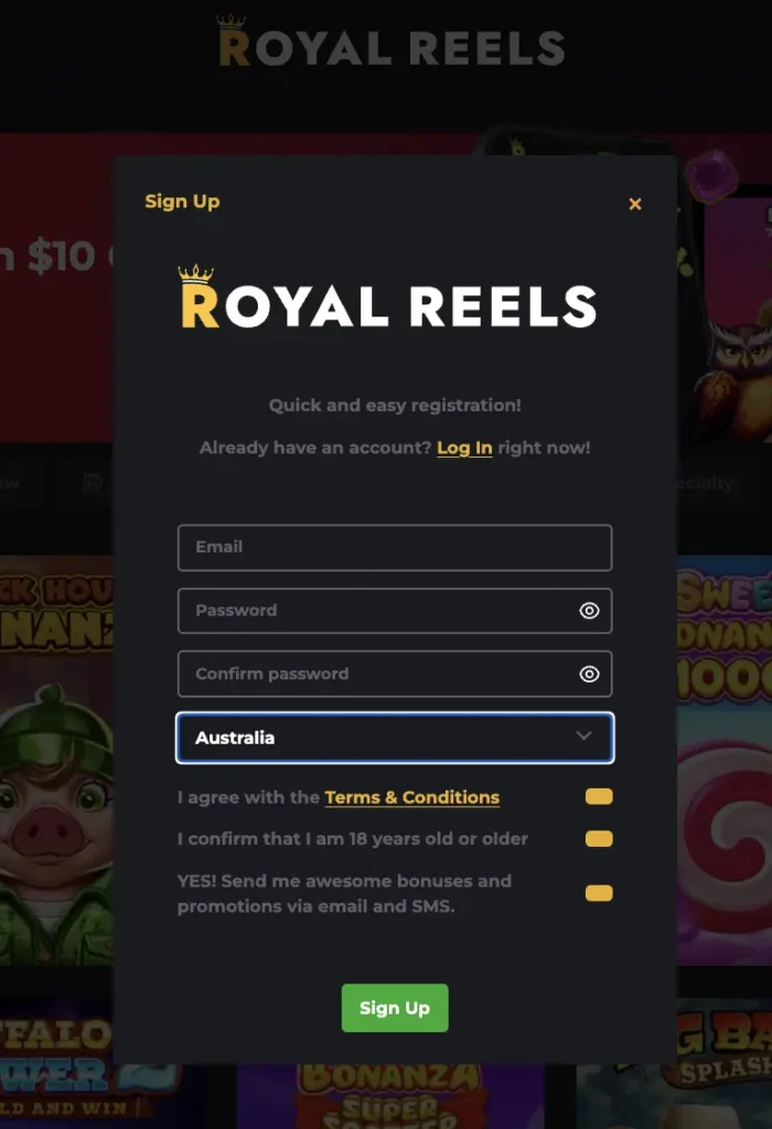 Royal Reels Registration and Login Process in Australia